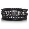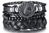 4Pcs/ Set Braided Wrap Leather Bracelets for Men Vintage Life Tree Rudder Charm Wood Beads Ethnic Tribal Wristband Rope Bracelet