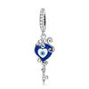 925 Sterling Silver Retro Blue Crystal Heart Beads Demon Eye Snake Key Charms Fit Bracelet Necklace DIY Jewelry Making