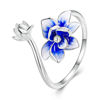 Real 925 Sterling Silver Unique Lotus Open Rings For Women Blue Enamel Statement Flower Ring Wedding Party Jewelry Gift